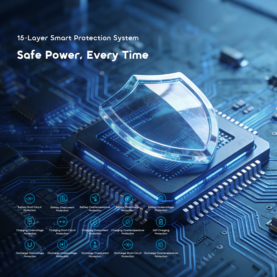 Built with 15 layers of intelligent protection to guard against overcharging, overheating, and short circuits, ensuring safe and stable charging for your devices every time.